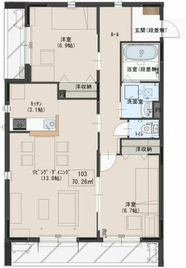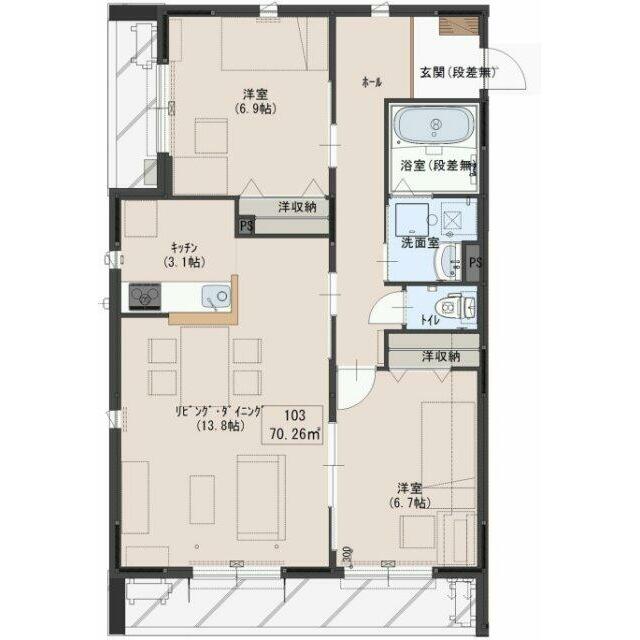 2LDK(LDK16.9、洋6.7、洋6.9) |