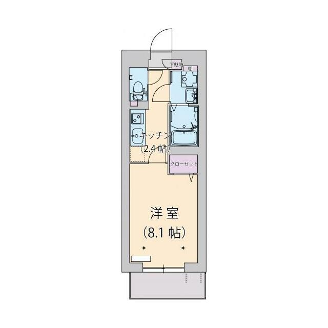 1K(洋室8.0帖・キッチン2.4帖・玄関・トイレ) |