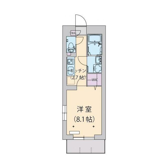 1K(洋室8.1帖・キッチン2.7帖・玄関・トイレ) |