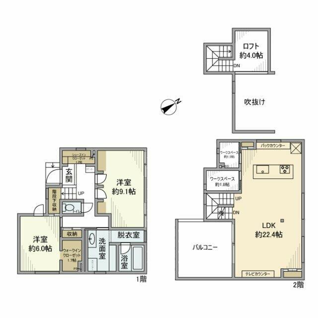 2LDK(LDK22.4、洋6、洋9.1) |