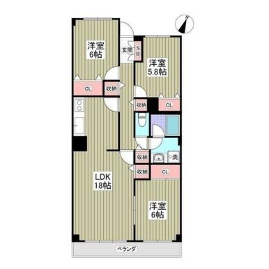 | 間取り | 3LDK(洋6 洋6 洋5.8 LDK18) | 主要採光面 | 南 |