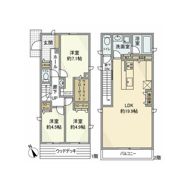 3LDK(LDK19.9、洋4.5、洋4.9、洋7.1) |